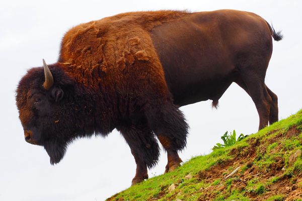 Jan Ophoven från Tyskland tilldelas andrapriset för sin fantastiska bild av en mäktig bisonoxe i profil i en nerförsbacke.
